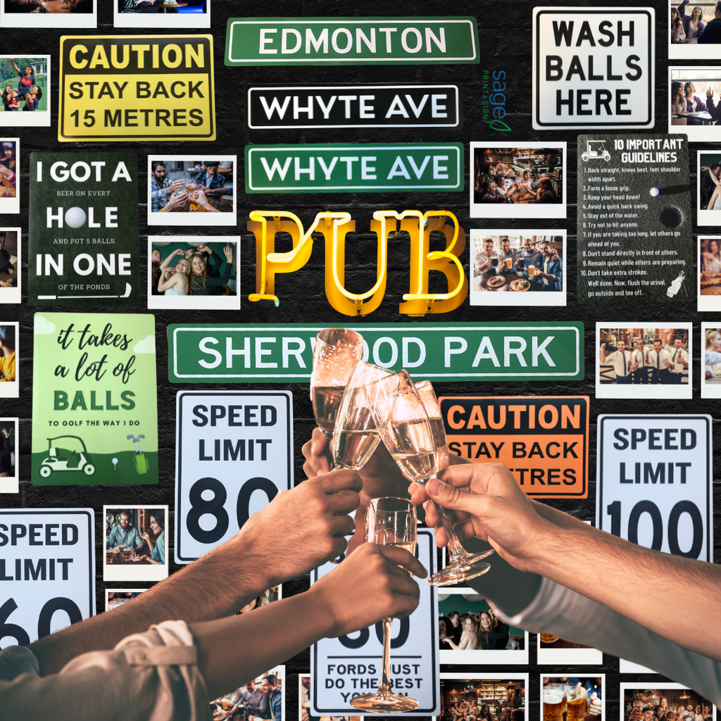 These signs are made of high quality vinyl and Dibond metal by a locally owned small business operated out of Sherwood Park, Alberta.