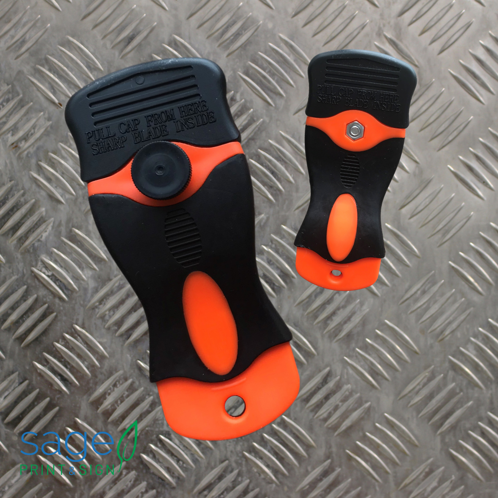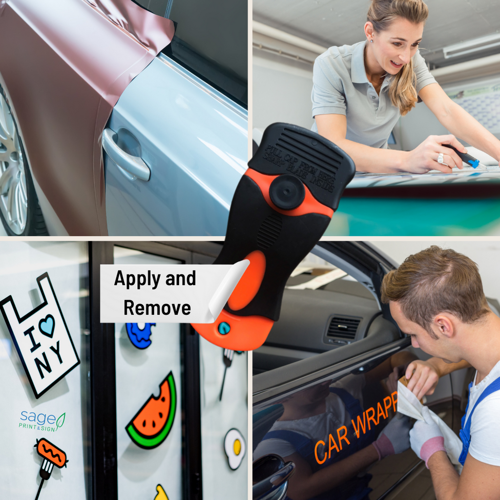 The plastic blades are non-scratching/non-marring, so it can be used to remove stickers, labels and decals from bumpers and safety plastic-laminated windshields while the metal blades can handle any hard to do projects.
