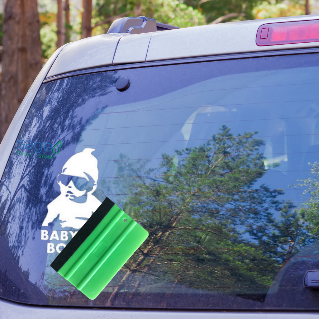 Green Squeegee Scraper Tool with Soft Felt Edge - for Cars, Vehicles, Windows, Vinyl, Film, Stickers, and more